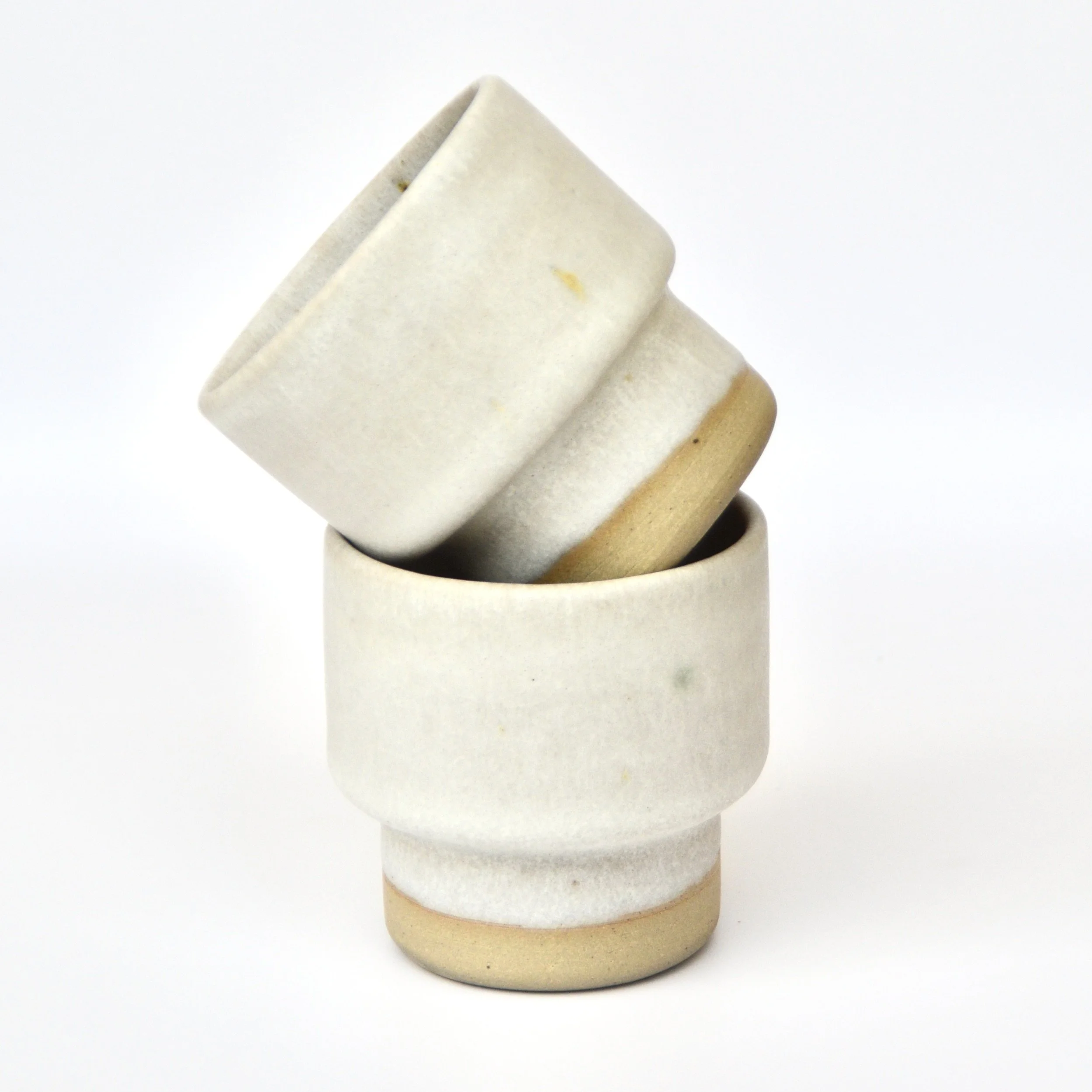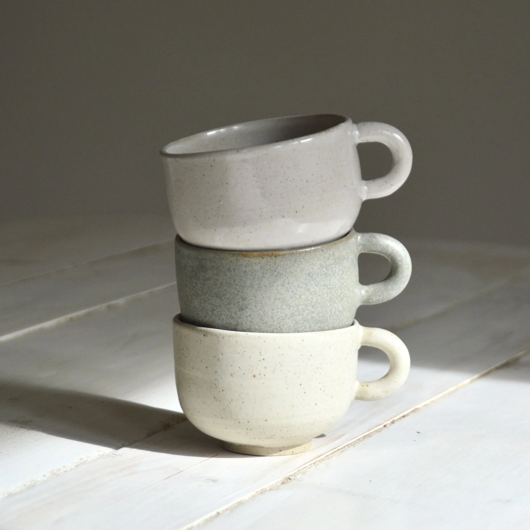 Ensemble de tasses en grès façonnées au tour, en petites séries.